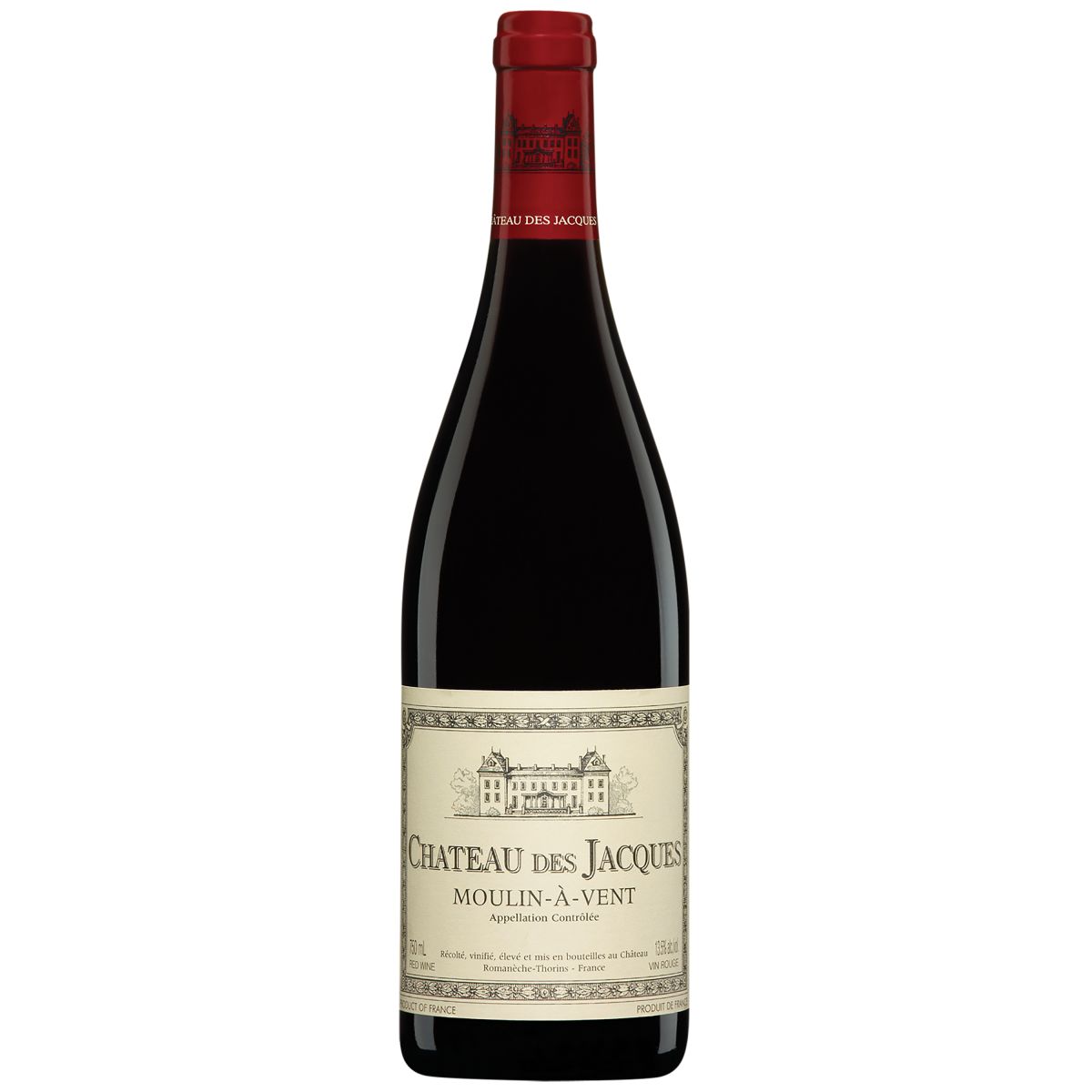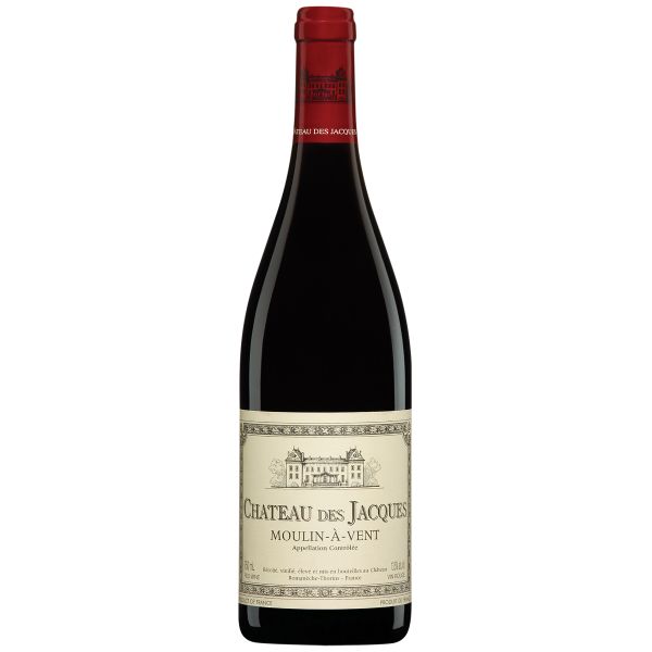 Le Château des Jacques est situé à Romanèche Thorins, dans le Beaujolais au Sud de la Bourgogne. Ce domaine comprend 30 hectares de vignoble en appellation Moulin-à-Vent. Ce vin est sans doute le plus bourguignon des crus de Beaujolais. L'origine géologique et la composition du sol sont assez différentes de celles de la Côte d'Or. Le sous-sol est granitique et riche en manganèse. C'est pourquoi les vins du Beaujolais ne sont fait qu'à partir de Gamay, cépage qui se comporte très bien sur ce type de sol. Le Moulin à Vent est souvent appelé " le Seigneur du Beaujolais". Le Moulin-à-Vent est un vin structuré, charpenté, charnu, particulièrement velouté et tendre en bouche. Avec sa robe rubis, il dégage des arômes d'iris, de roses fanées, d'épices et de fruits murs.