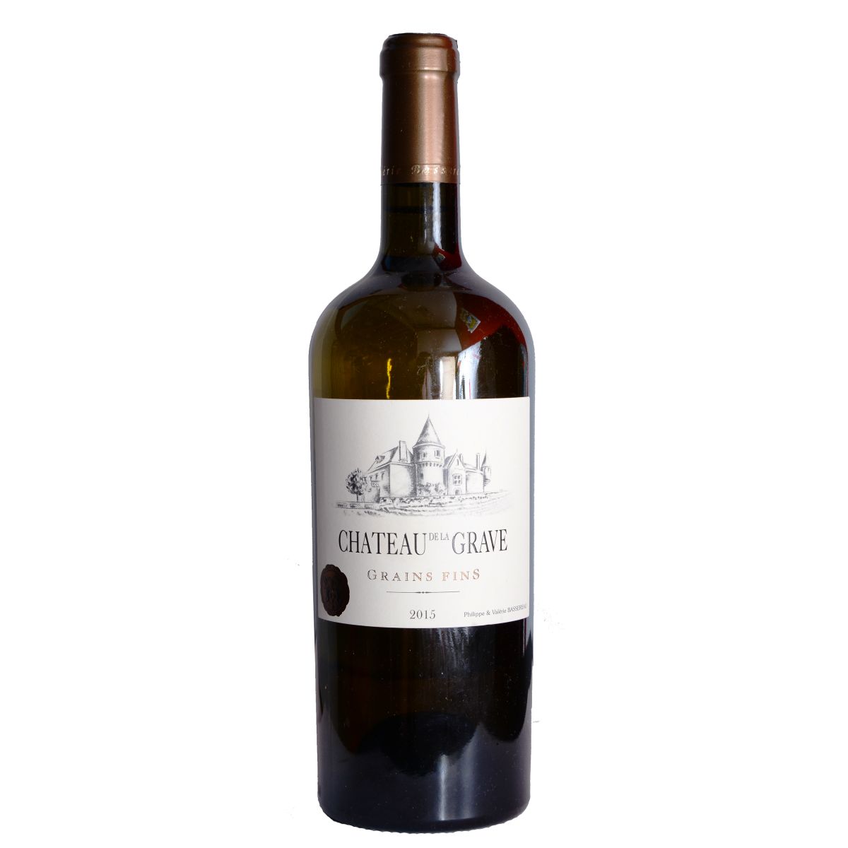 Atypique assemblage de Sémillon et de Colombard, c’est un vin blanc sec, rare, original et unique qui a fait la réputation du Château de la Grave. Au nez des arômes d’agrumes mêlés à des notes boisées légères et au palais soutenu par une très belle fraîcheur, il étonne par sa richesse et sa longueur en bouche. Légèrement boisé, grâce à l’élevage en fûts de chêne, il ne doit pas être bu trop frais. Equilibre, à la fois soyeux et complexe, fin et nerveux.