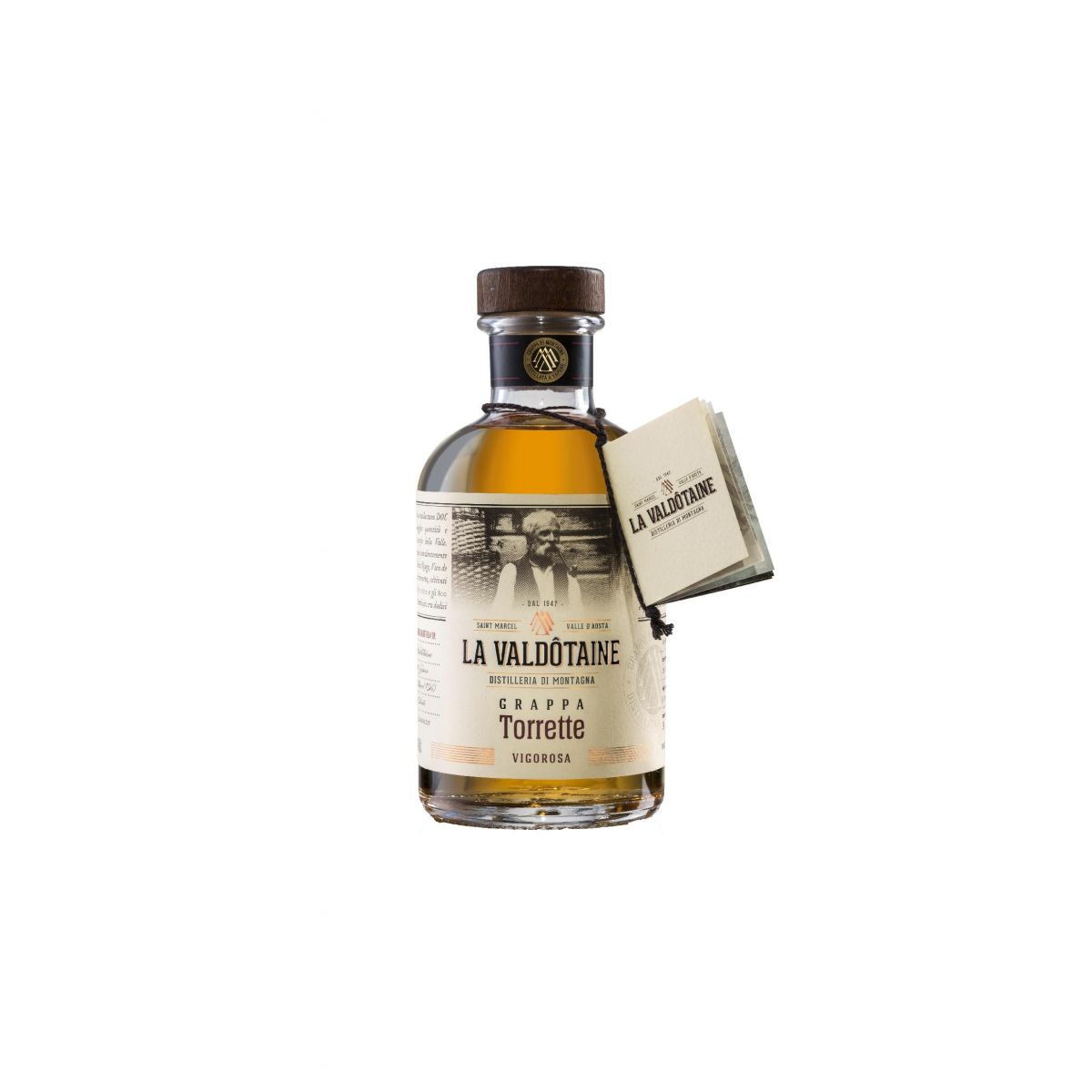 Le marc, distillé dans de petits alambics discontinus en cuivre à vapeur directe, génère cette Grappa au goût sec et décisif avec des notes de sous-bois bien mêlées à la vanille et à la note épicée du vieillissement.